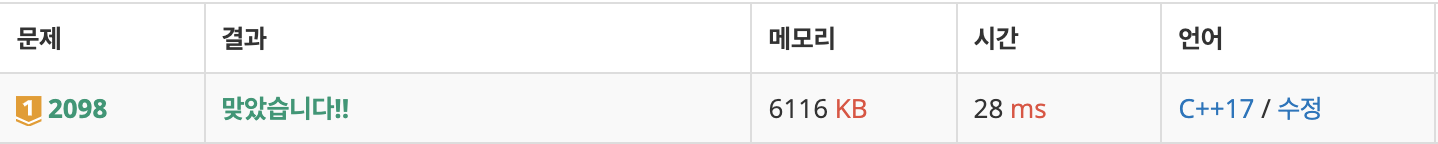[C++] 백준 2098번 - 외판원 순회 (비트마스킹, DP) (1) | 2021.07.07 |