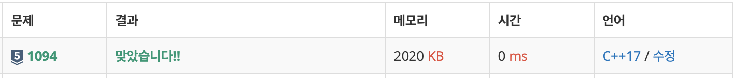 [C++] 백준 1094번 - 막대기(비트마스킹 or 우선순위 큐) (0) | 2021.07.06 |