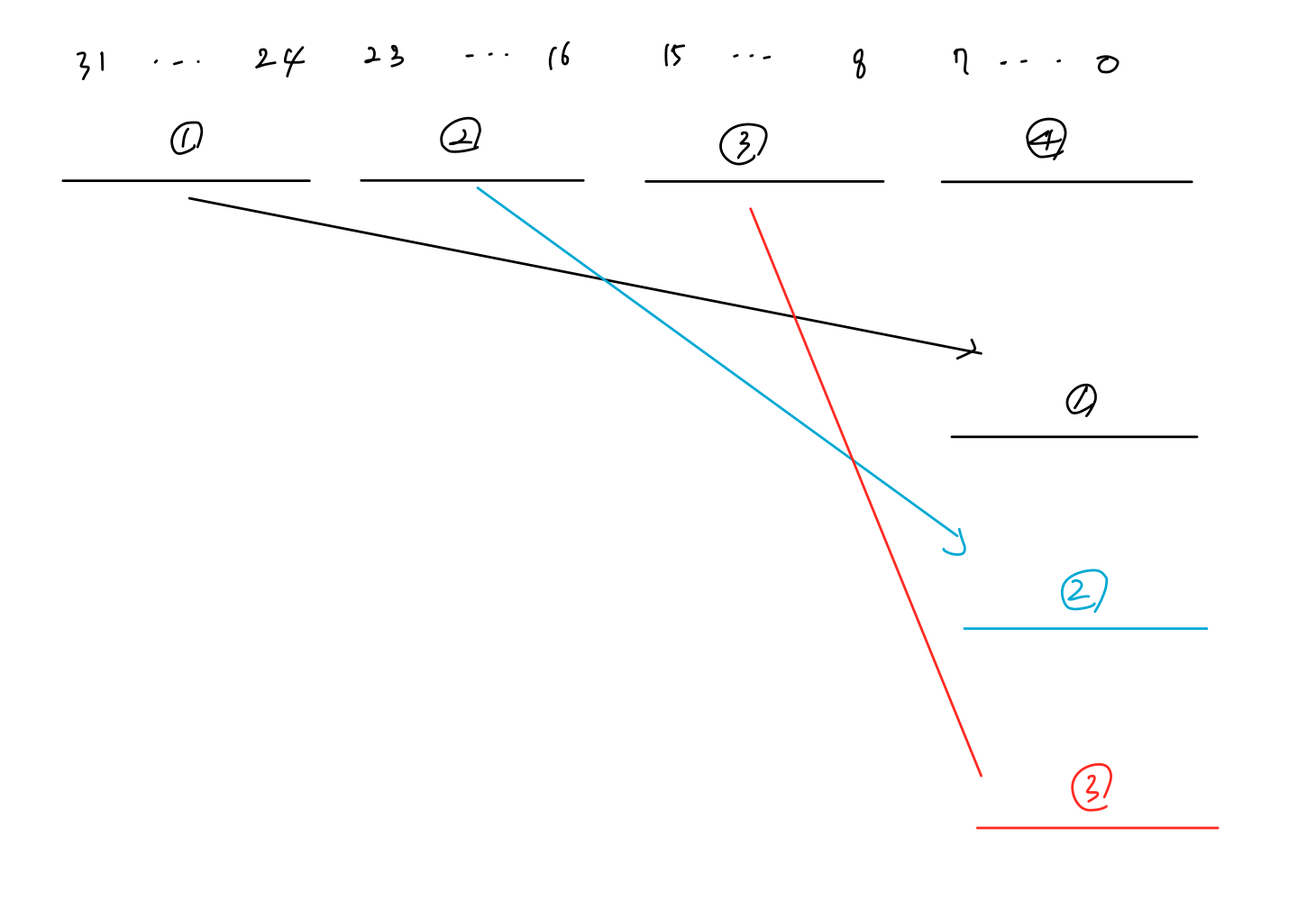 for문에서 shift의 값은 24, 16, 8,0 순으로 변한다.