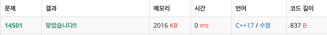 | [C++] 백준 14501번 - 퇴사 (DFS) (0) | 2021.03.07 |