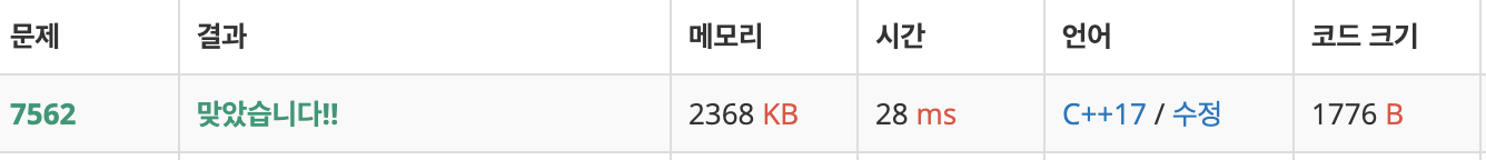 | [C++]백준 7562번 - 나이트의 이동 (0) | 2021.01.14 |
