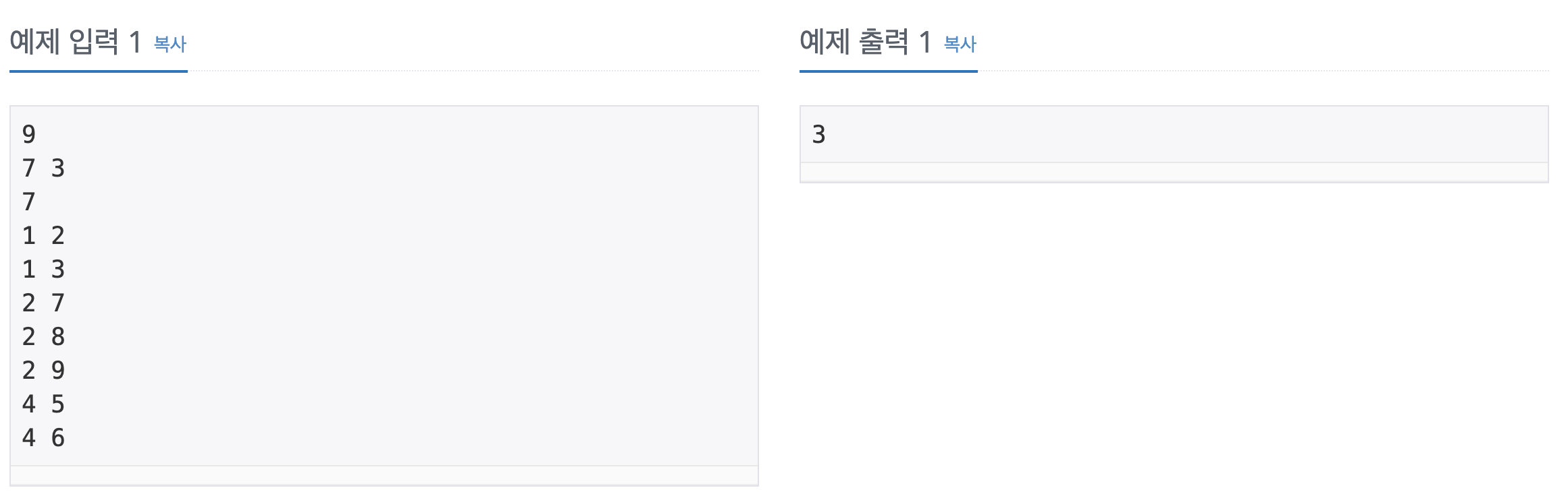 위와 같은 친구 관계가 존재하는지 안하는지 구하는 프로그램을 작성하시오.