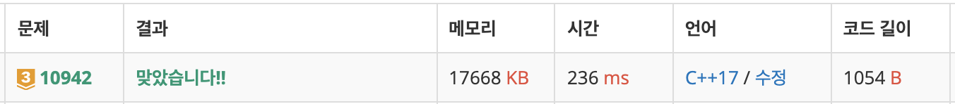 | [C++] 백준 10942번 - 팰린드롬? (DP, 다이나믹 프로그래밍) (0) | 2021.08.16 |