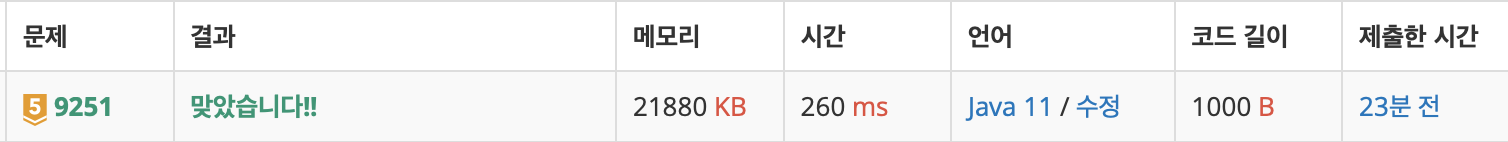 문제 링크 : https://www.acmicpc.net/problem/9251