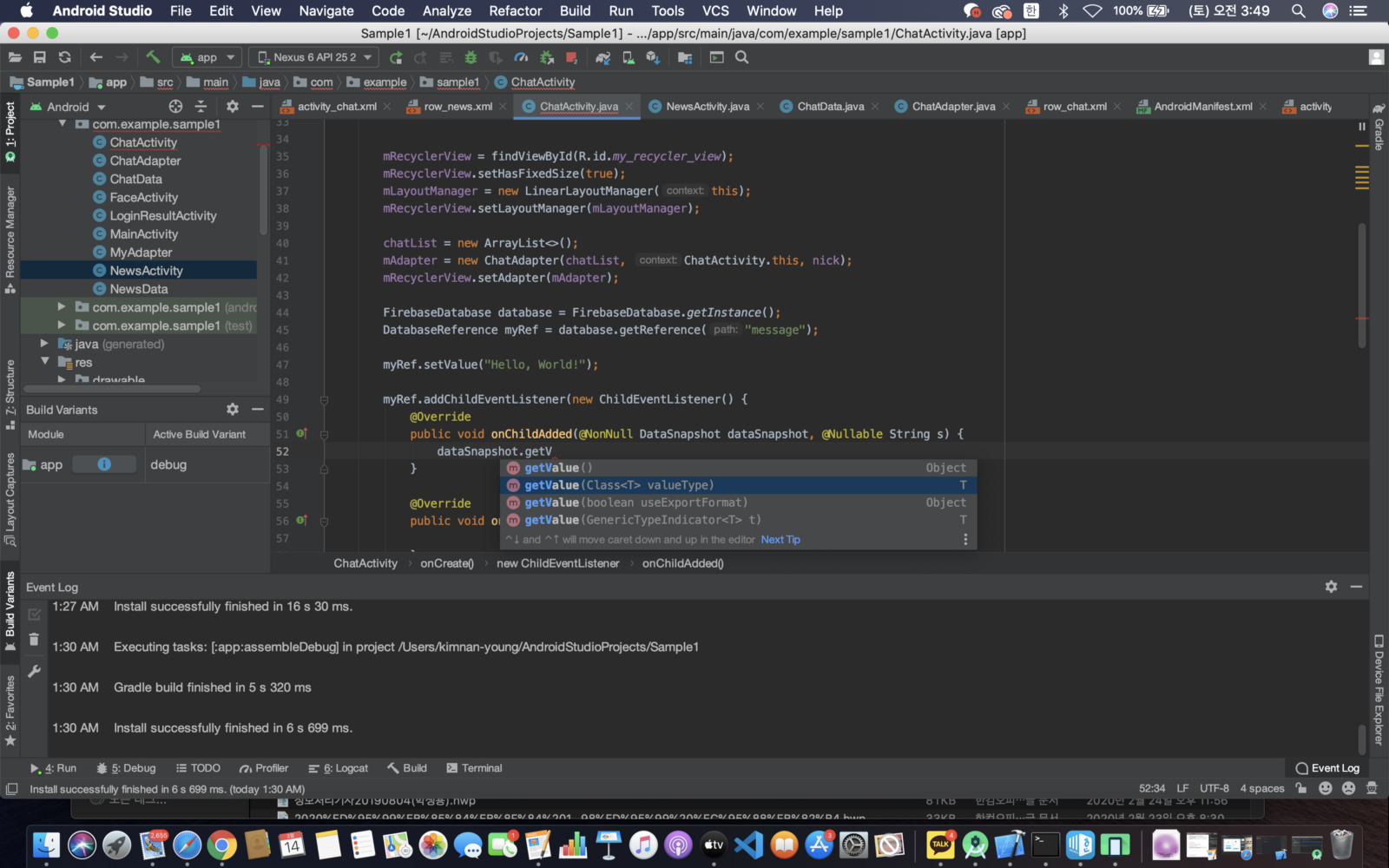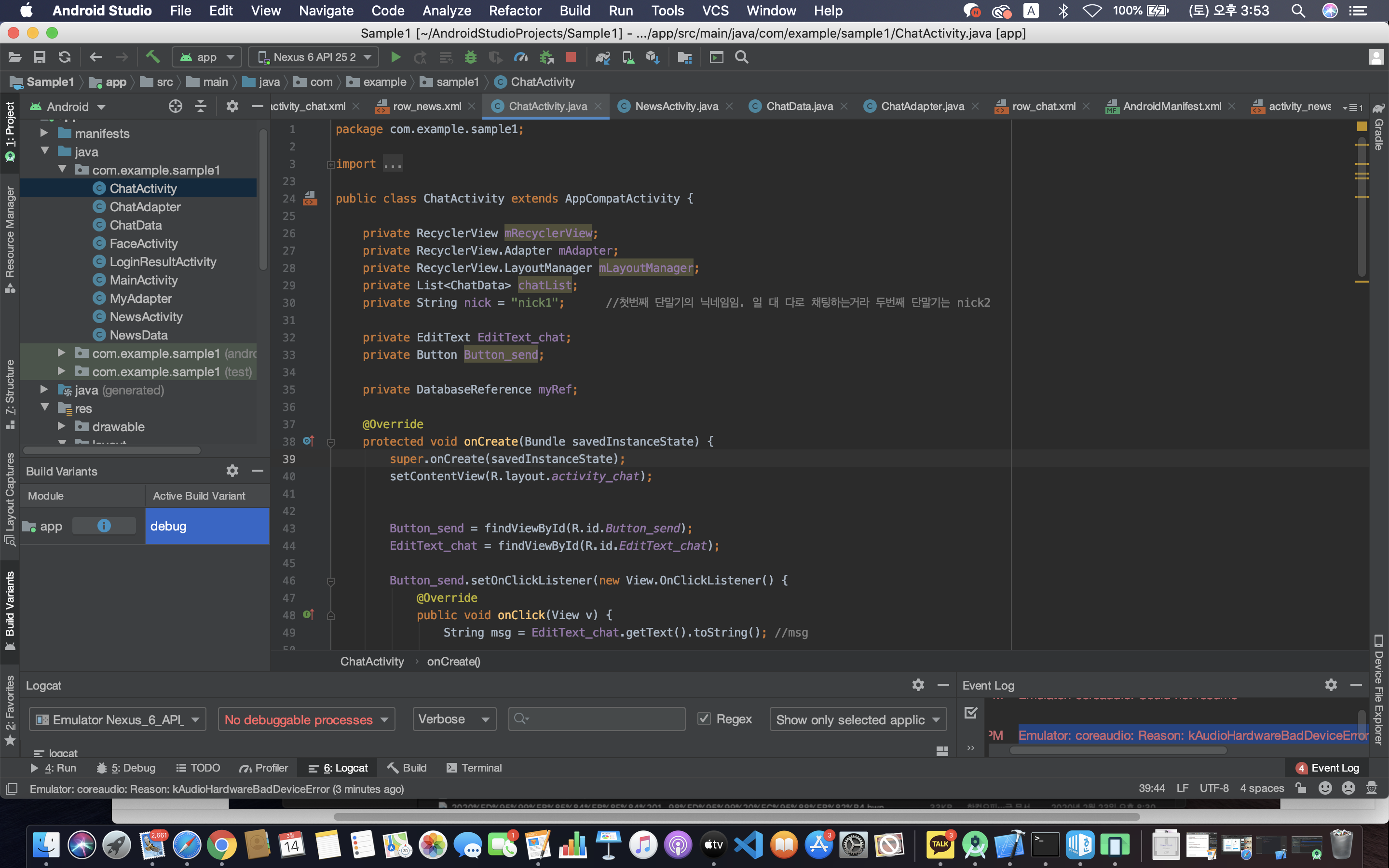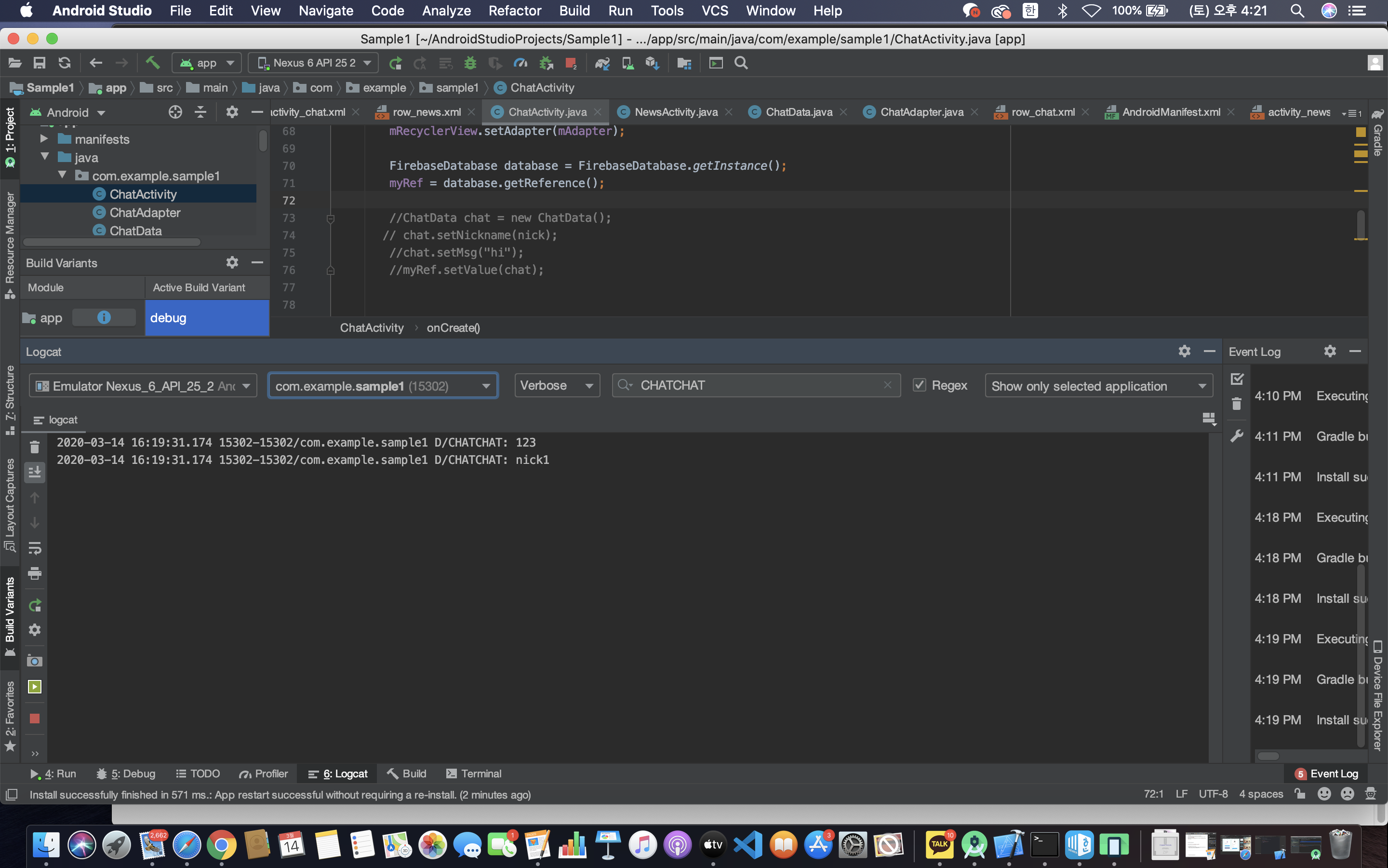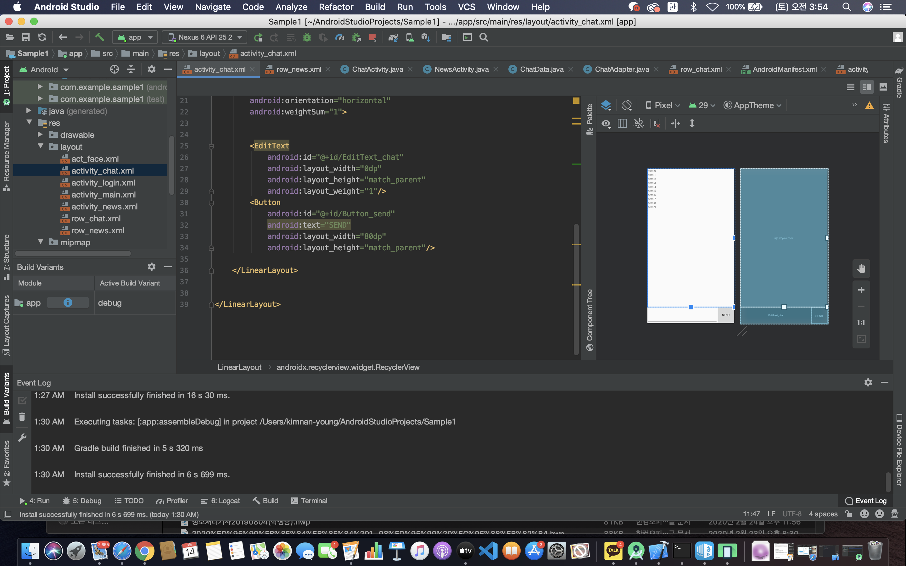 | 안드로이드 스튜디오 기초 - 채팅 앱 만들기 (센치한 개발자) (3) | 2021.03.07 |