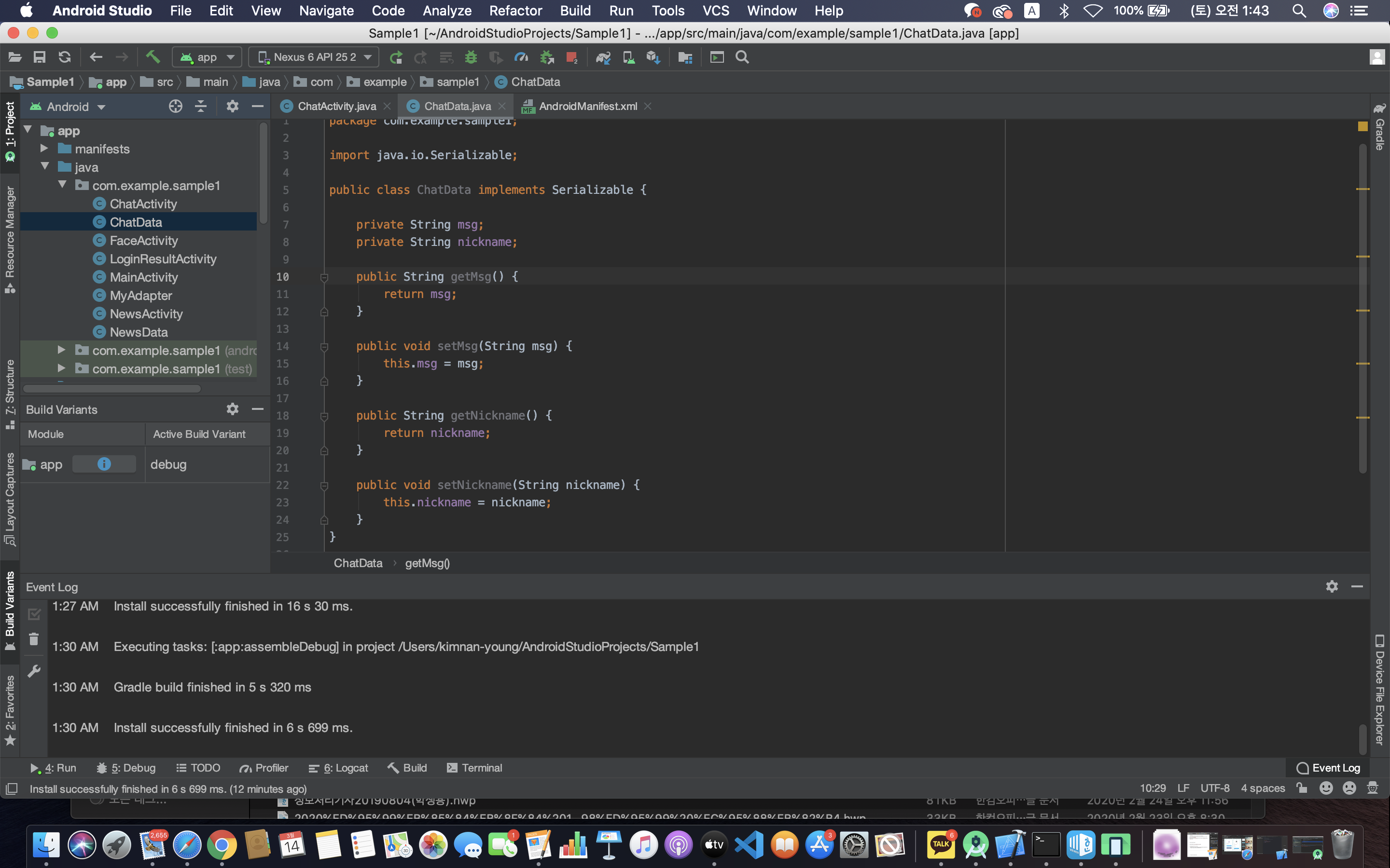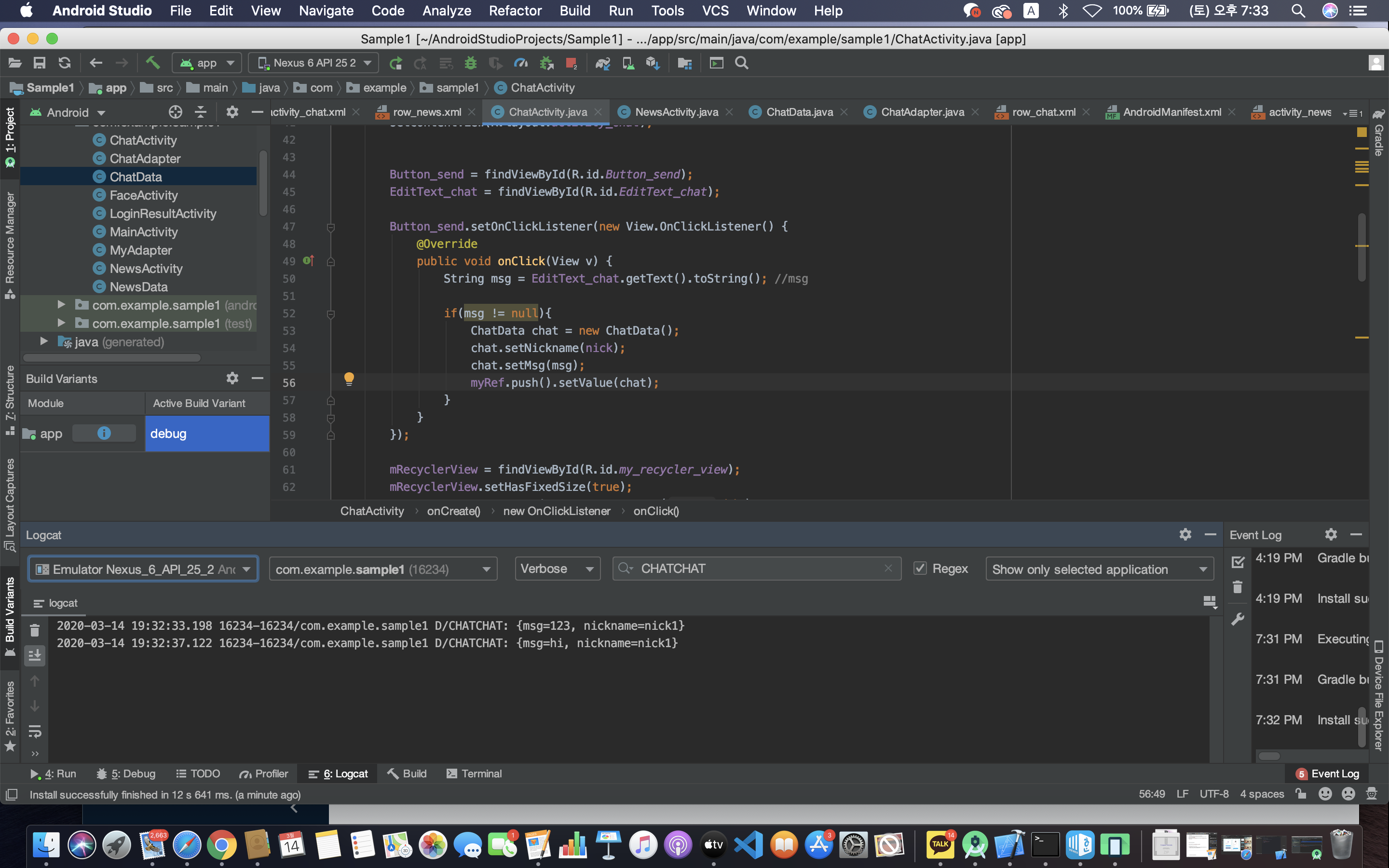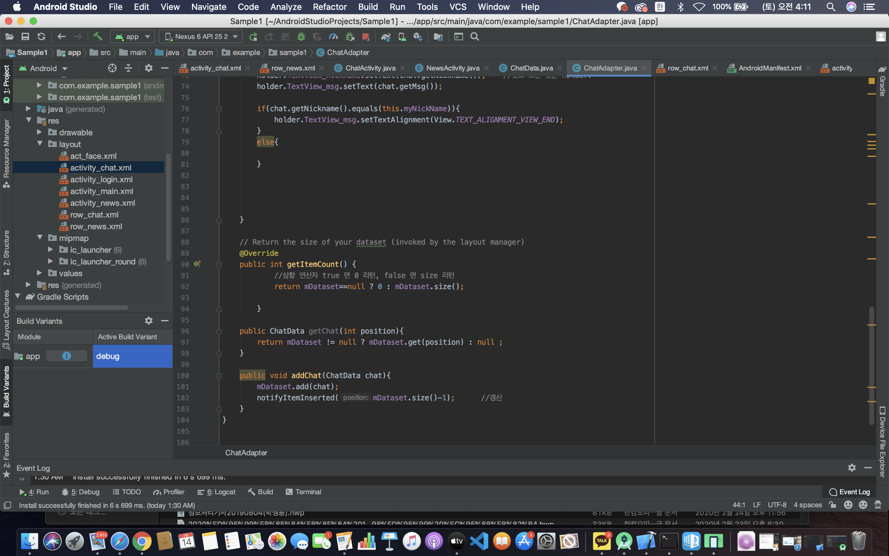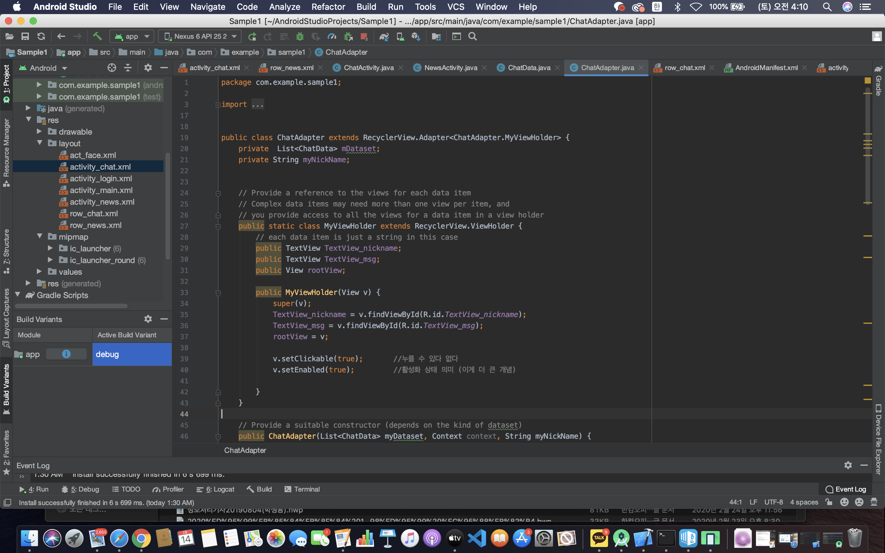 | 안드로이드 스튜디오 기초 - 채팅 앱 만들기 (센치한 개발자) (3) | 2021.03.07 |