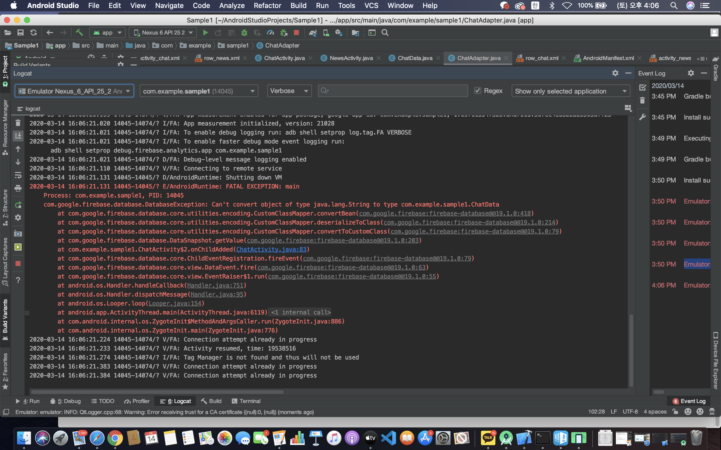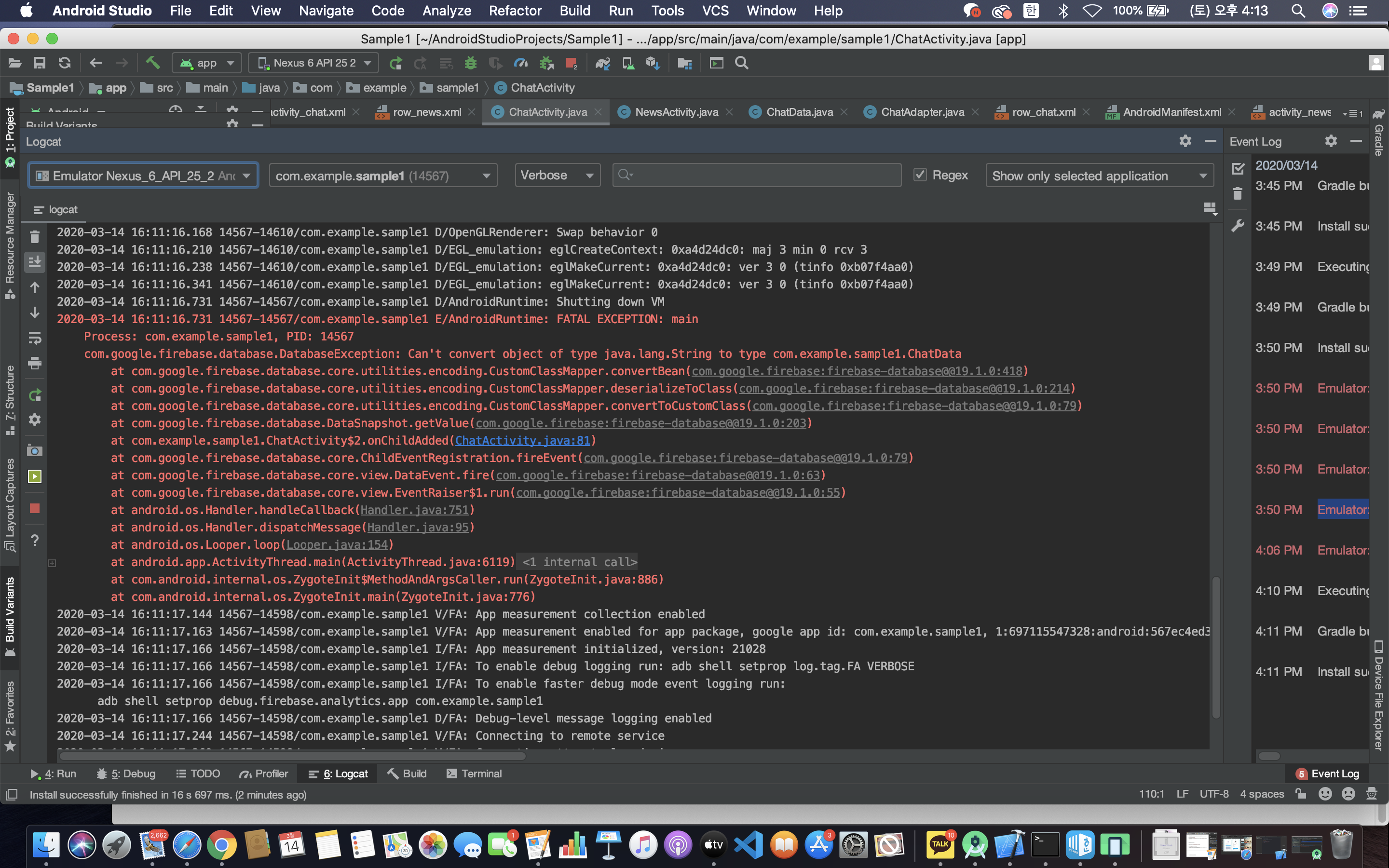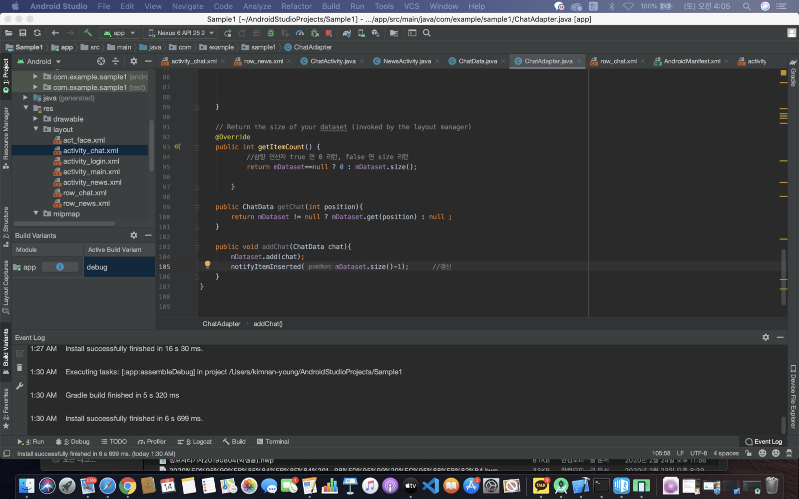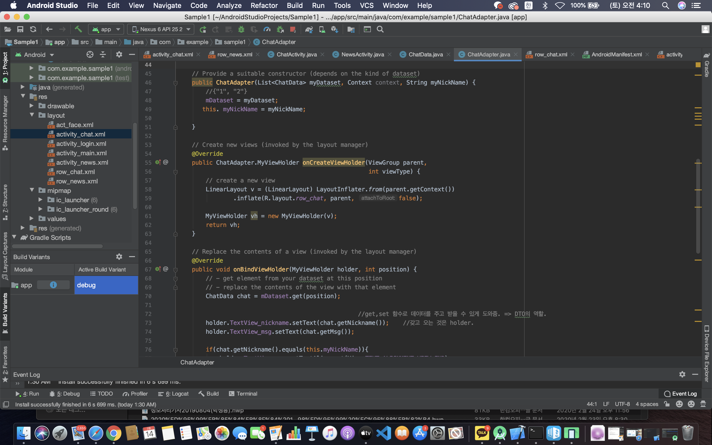 | 안드로이드 스튜디오 기초 - 채팅 앱 만들기 (센치한 개발자) (3) | 2021.03.07 |