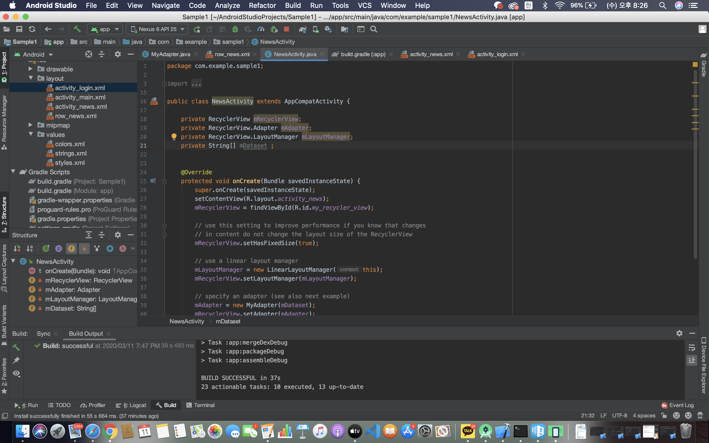 | 안드로이드 스튜디오 기초(3) — 뉴스 앱 만들기 1 (0) | 2021.01.16 |