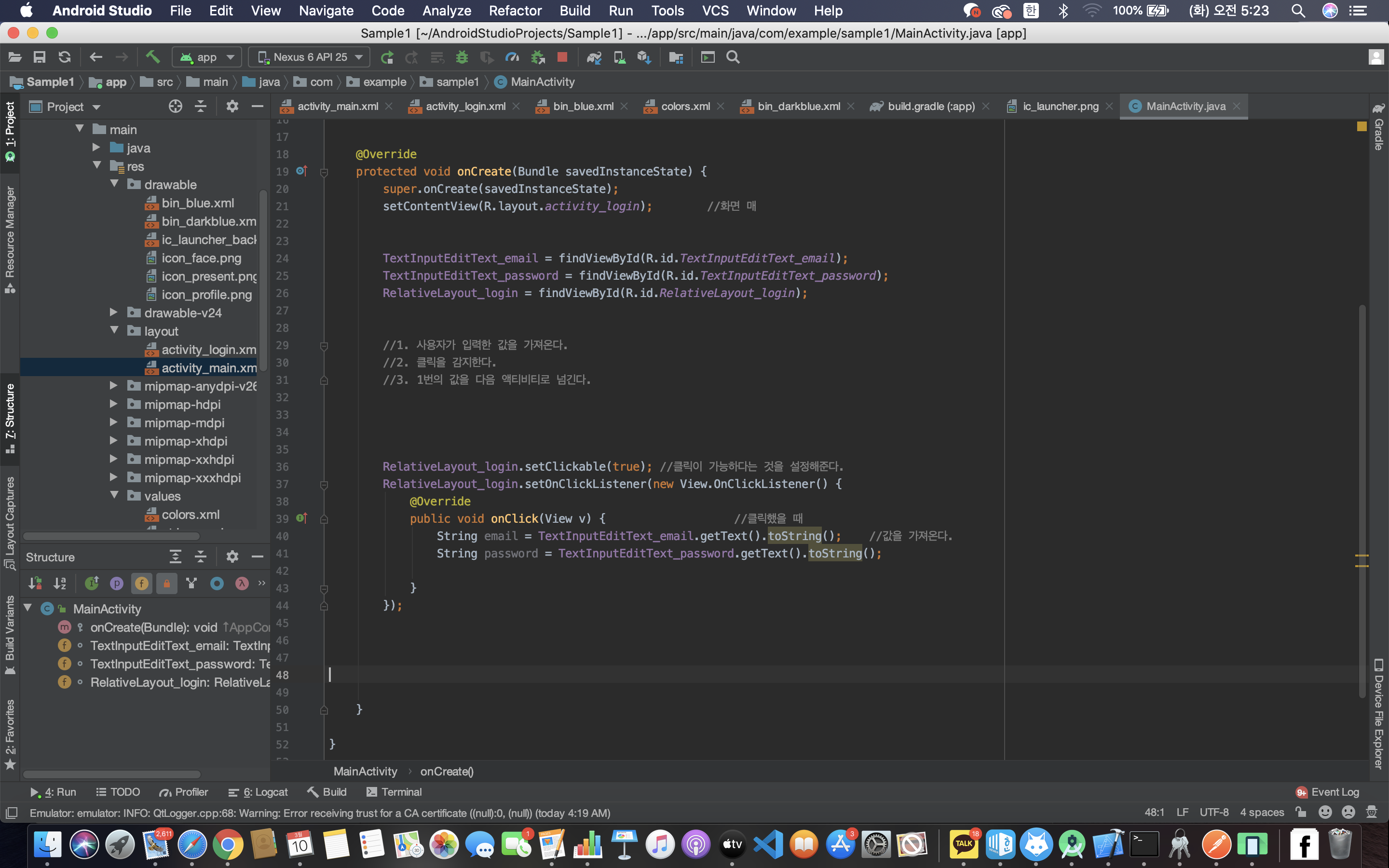 | 안드로이드 스튜디오 기초(2) — 로그인 화면 만들기 (1) | 2021.01.16 |