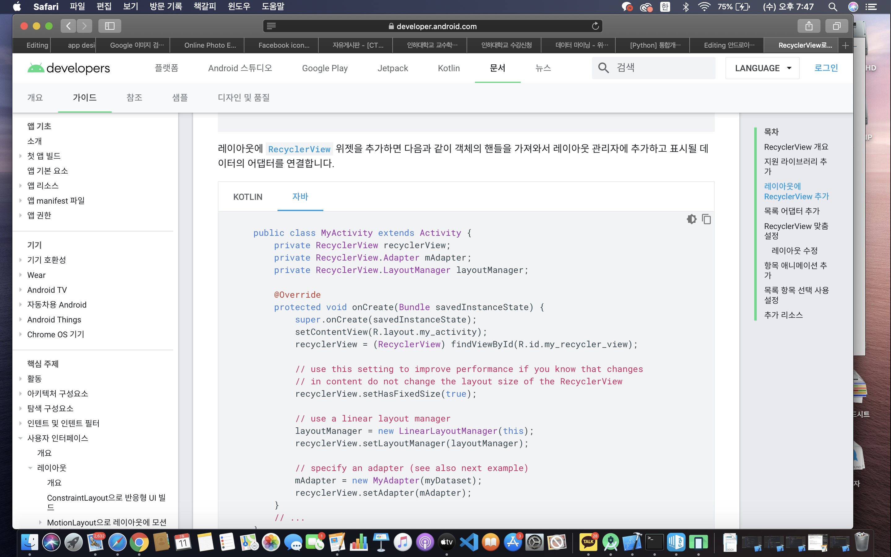 | 안드로이드 스튜디오 기초(3) — 뉴스 앱 만들기 1 (0) | 2021.01.16 |