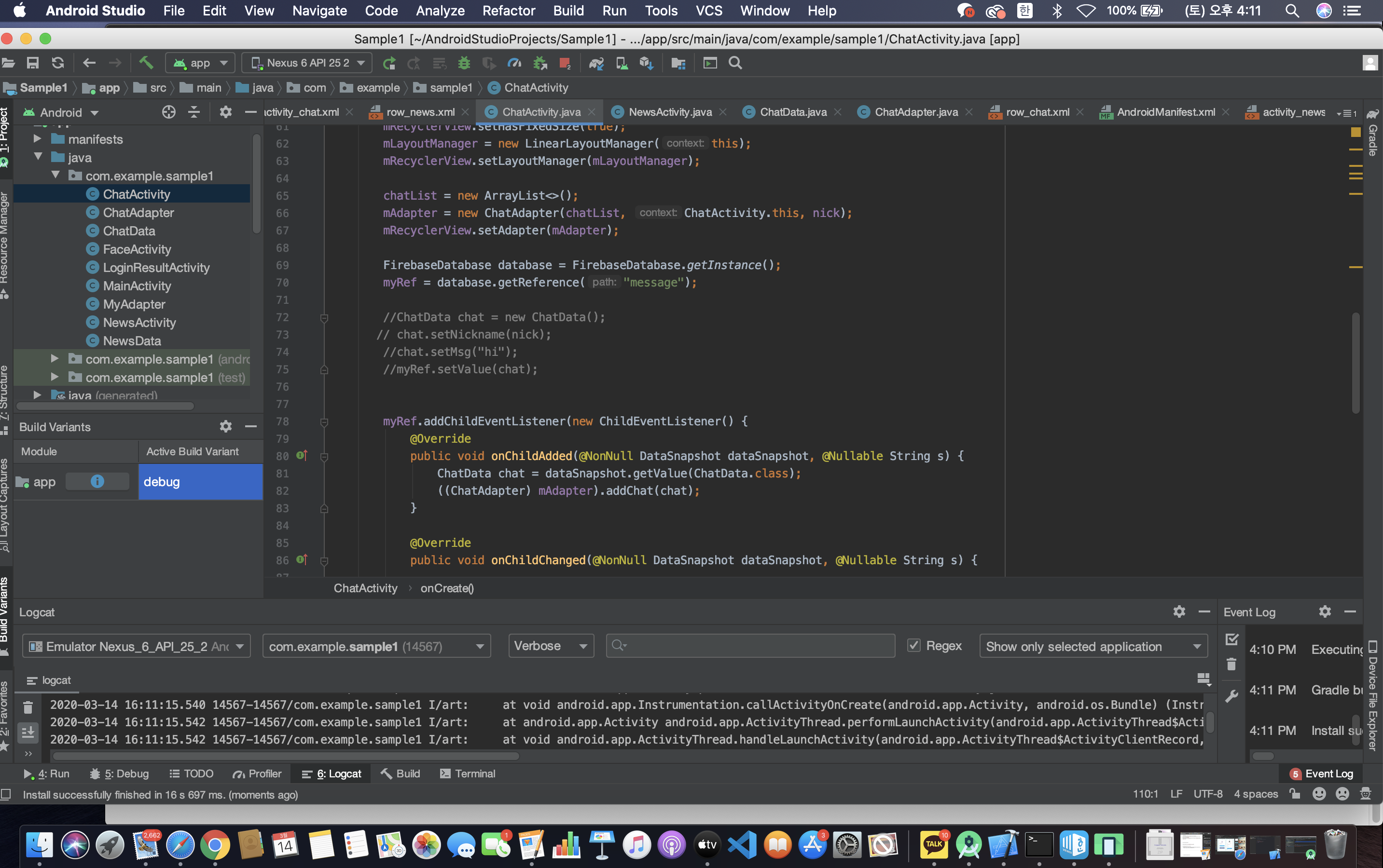 | 안드로이드 스튜디오 기초 - 채팅 앱 만들기 (센치한 개발자) (3) | 2021.03.07 |