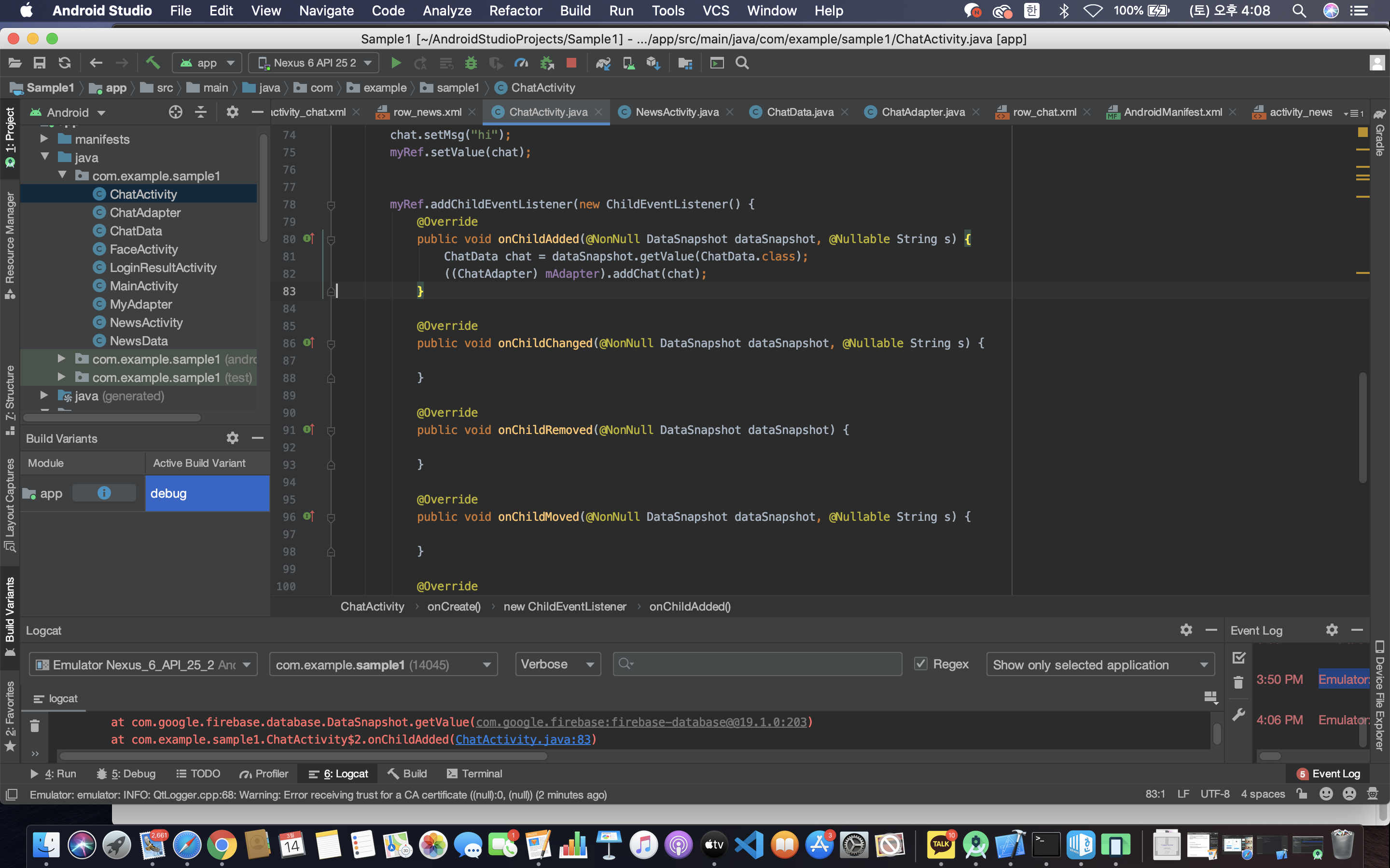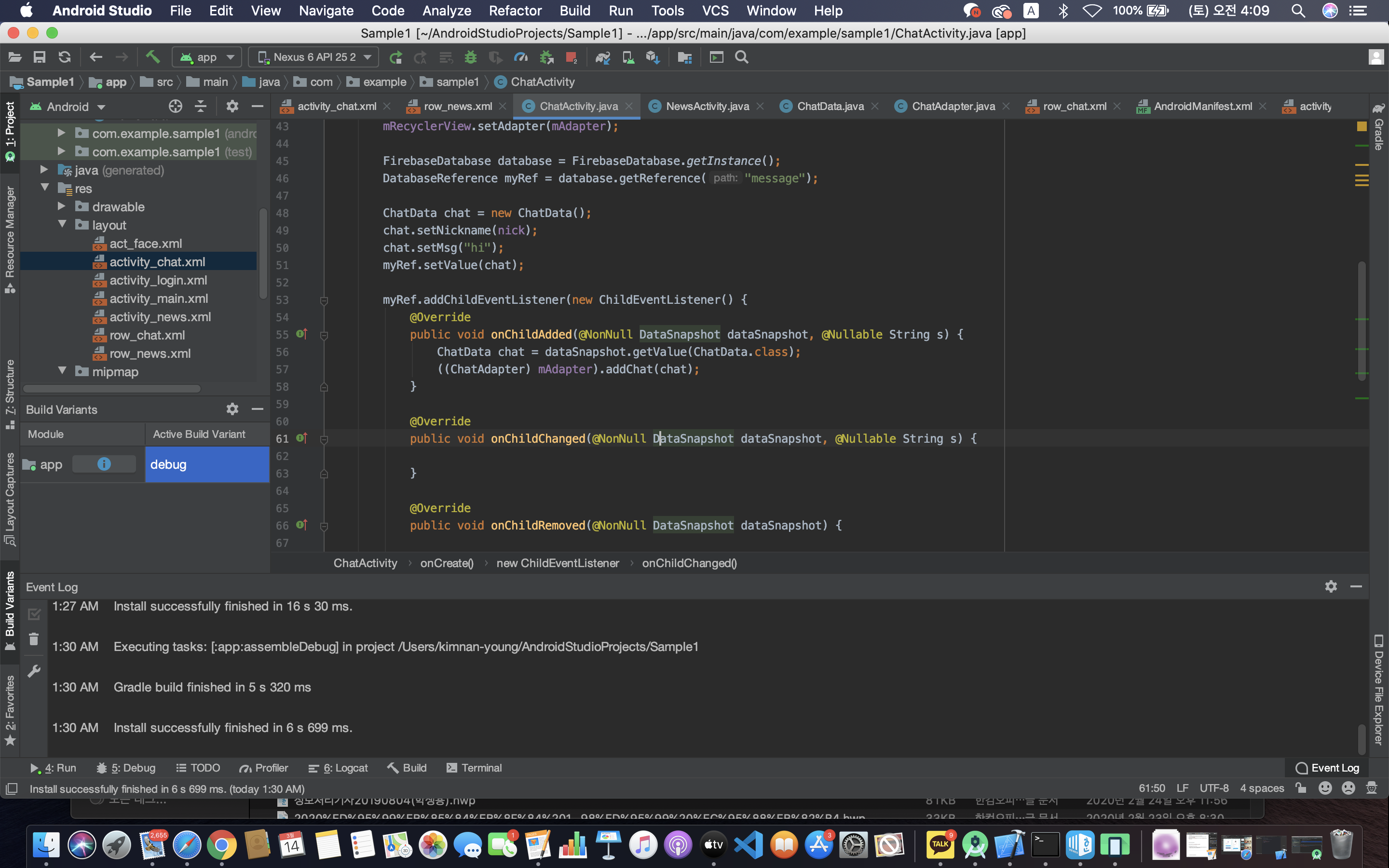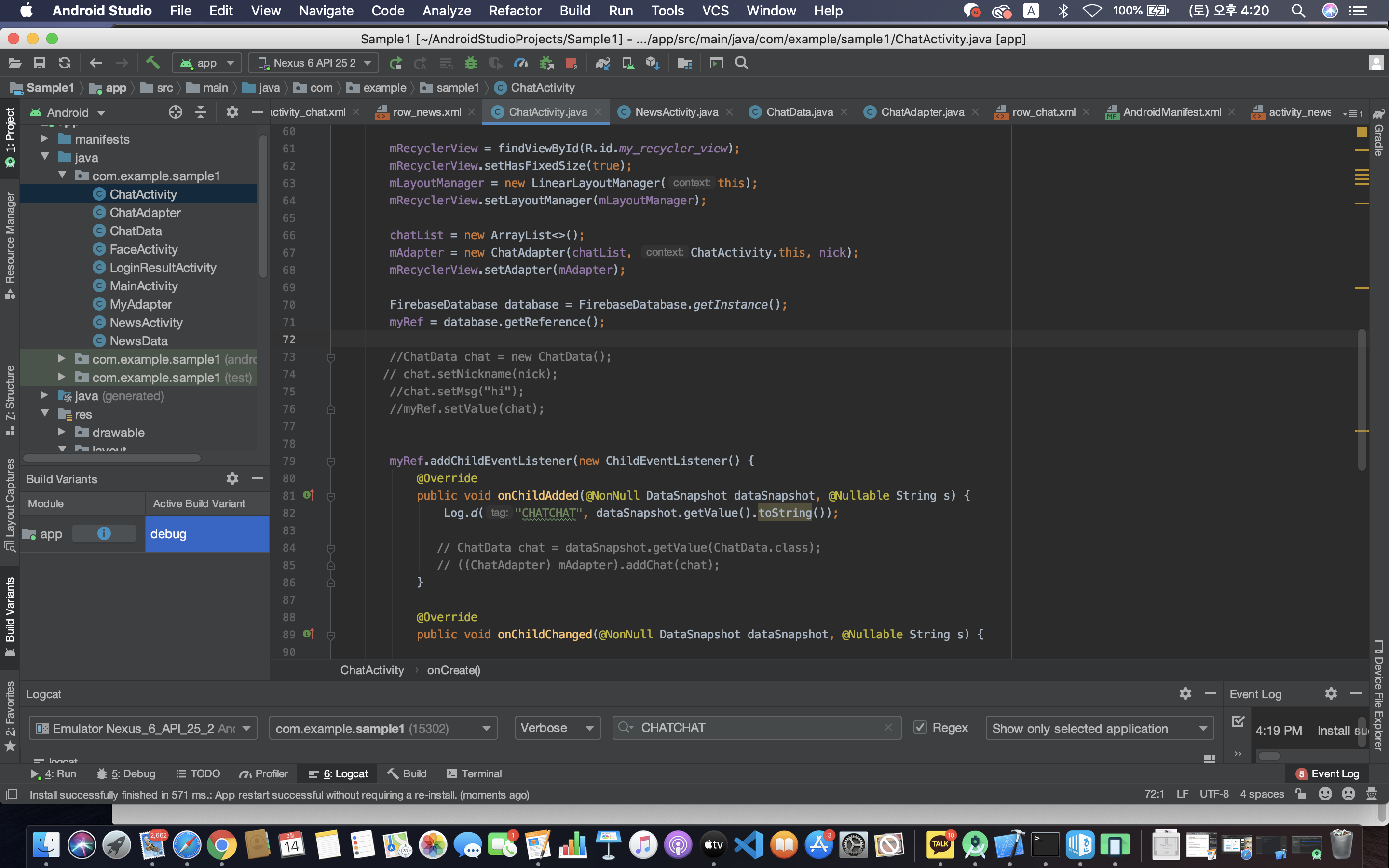 안드로이드 스튜디오 기초 - 채팅 앱 만들기 (센치한 개발자) (3) | 2021.03.07 |