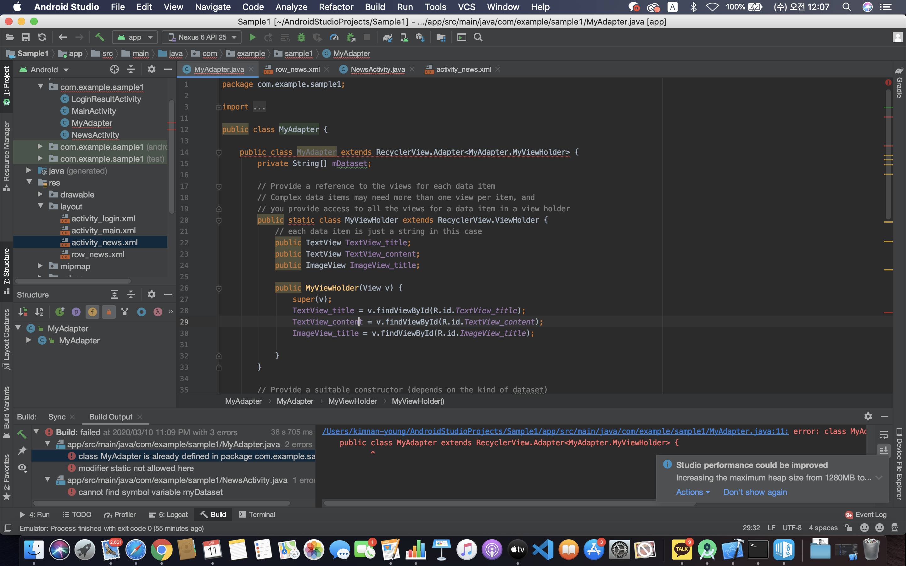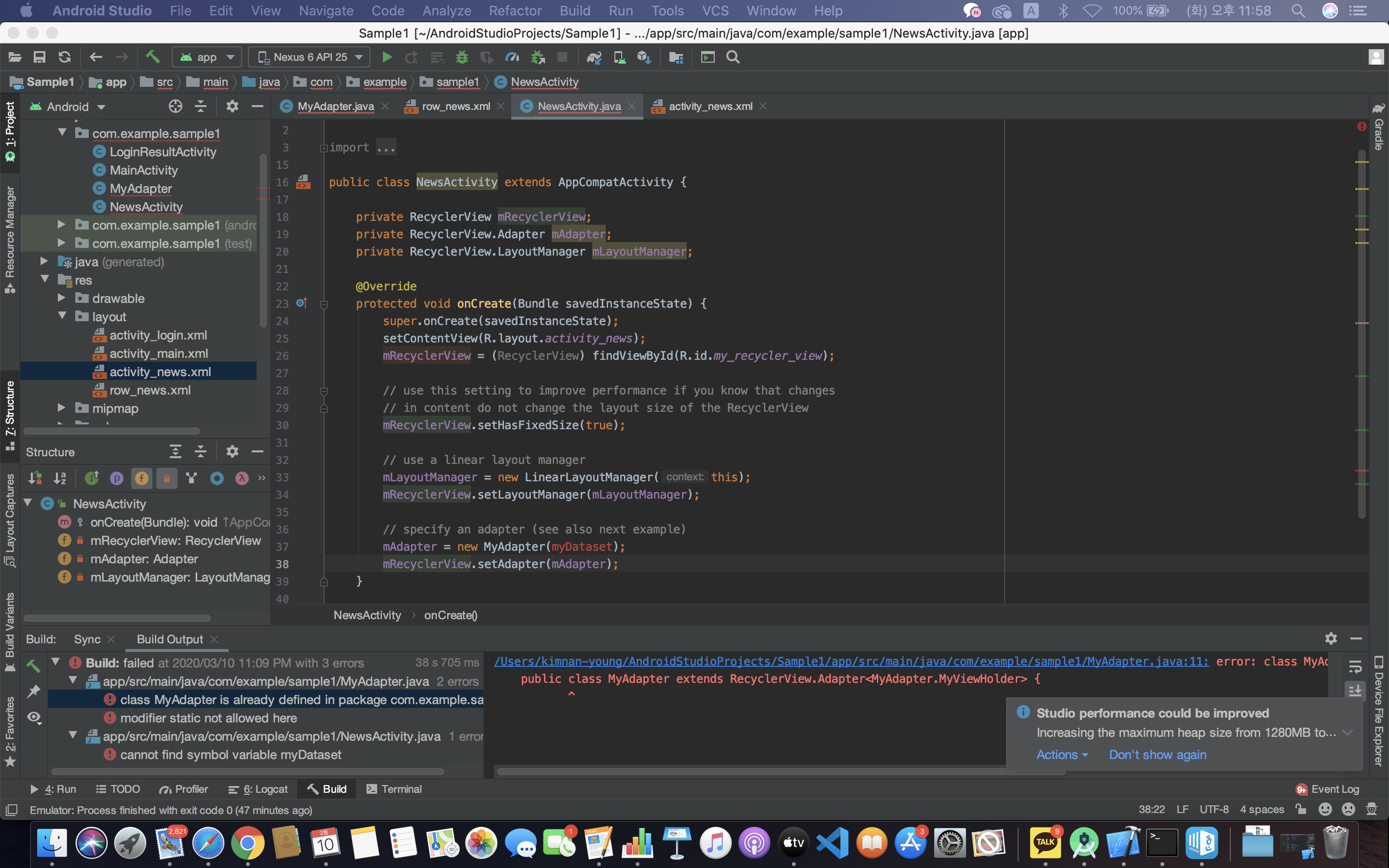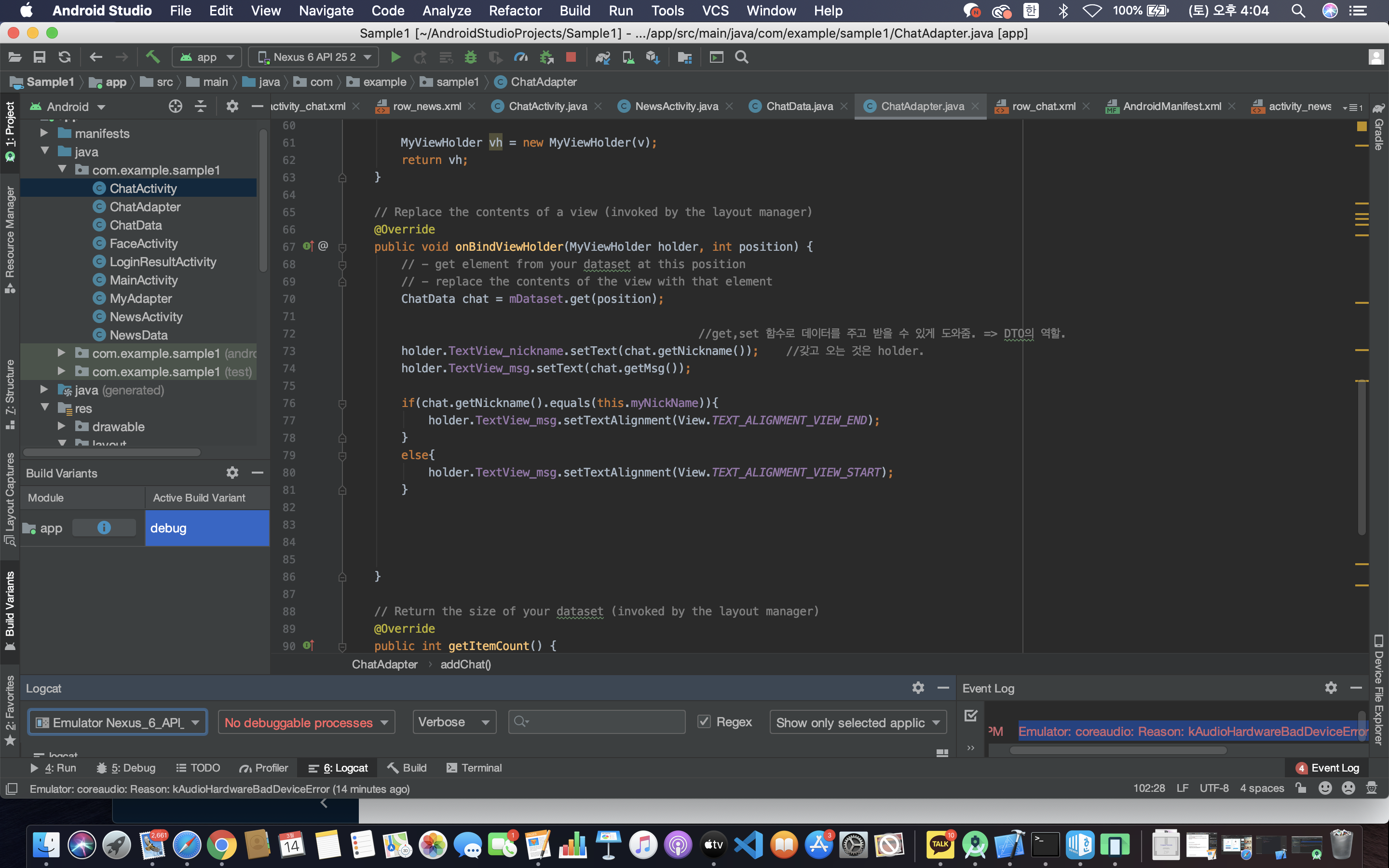 안드로이드 스튜디오 기초 - 채팅 앱 만들기 (센치한 개발자) (3) | 2021.03.07 |