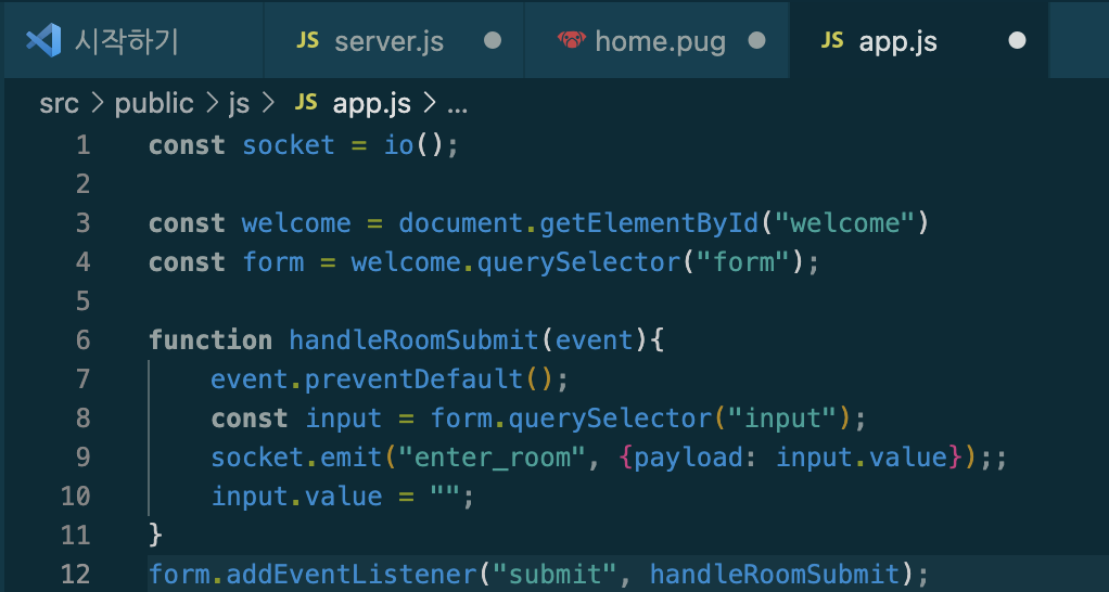 다음 app.js에 line6과 같이 ID를 통해 Element를 가져온다.