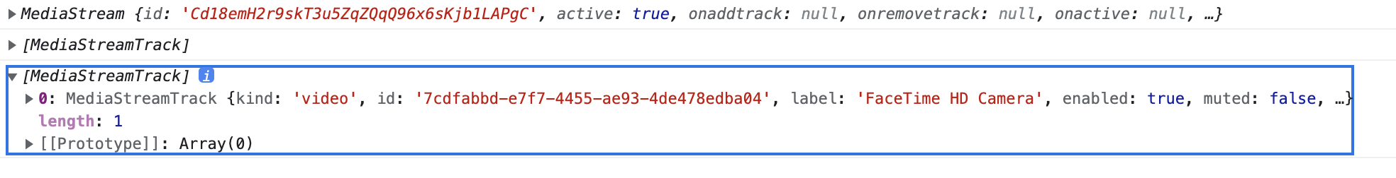 console.log(myStream.getAudioTracks());