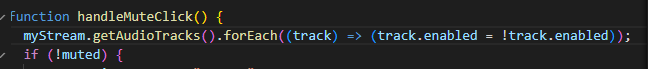 Mute Button, Camera Button을 클릭했을 때, 해당 속성을 true<->false 로 변환하기 위해 아래와 같이 작성한다.