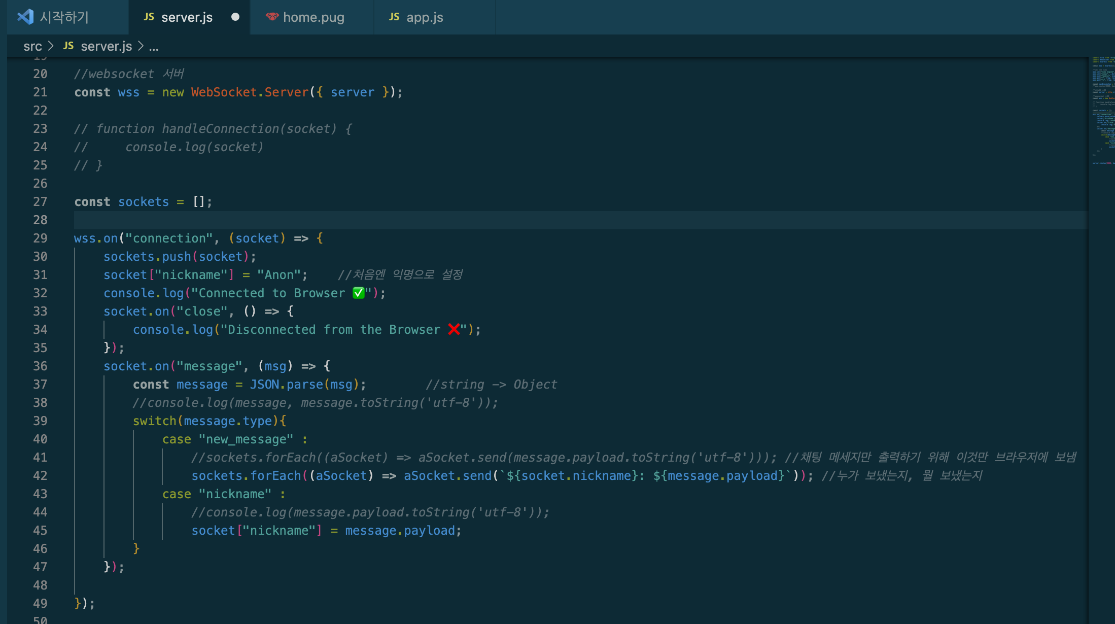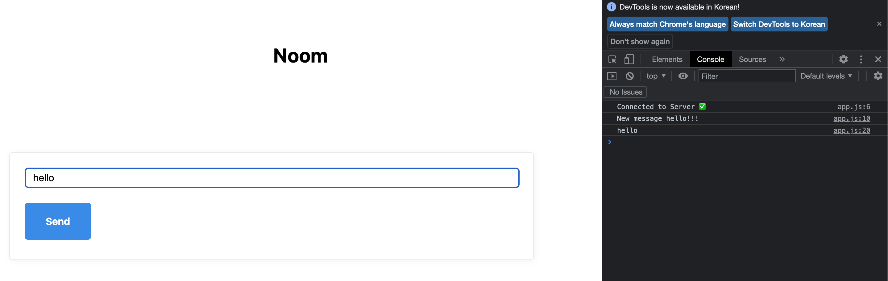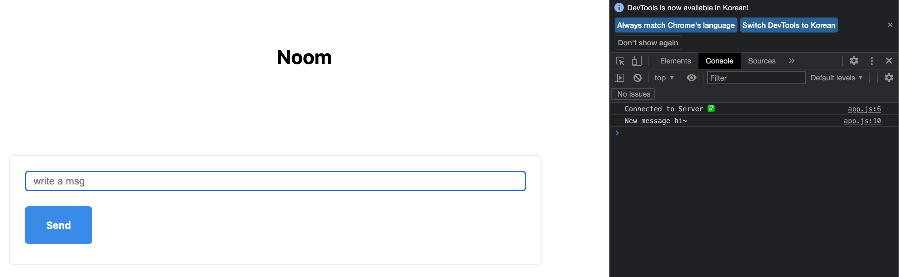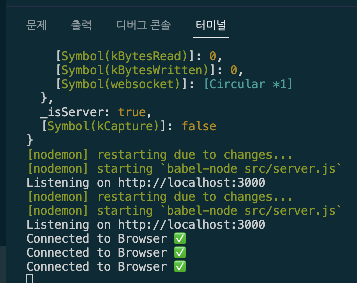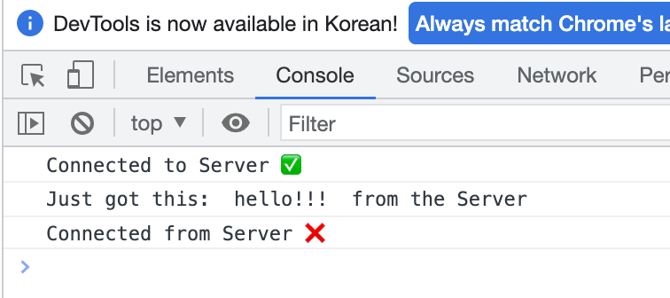 잘 나온다. 여기서 주목할 점은 socket 이 데이터를 저장할 수 있다는 것이다. (socket["nickname"] = ....)