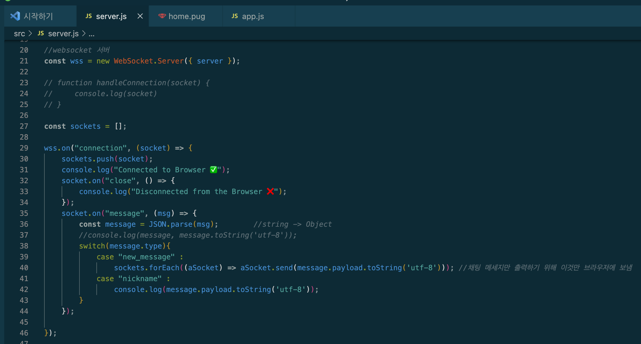 이제 누가 메세지를 보낸건지 식별하기 위해 type이 nickname 인 메세지의 payload 를 socket 에 넣어보자.