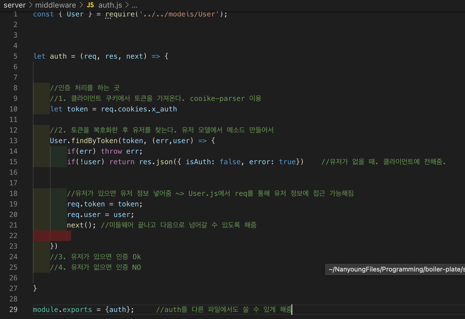 여기로 그 요청이 넘어온다. 여기서는 토큰을 사용해서 쿠키 안에 토큰을 집어 넣는다. 그 쿠키를 보고 로그인 한 유저인지 아닌지를 판단하고 그 결과를 리액트에 넘겨준다.