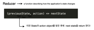 switch(action.type){ //Action에는 여러 타입 존재함. 이 타입에 따라 다르게 반응하도록 작성