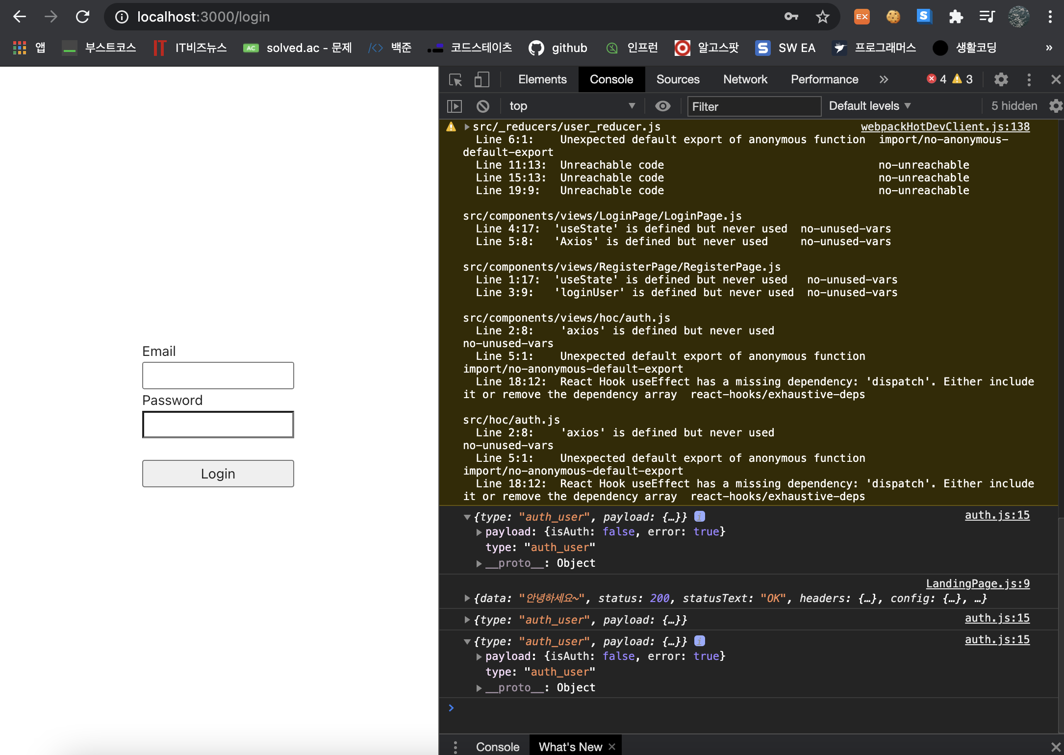 여기서 서버쪽의 API로 request를 보낼 것이다. 보내기 위해 redux를 사용했다. dispatch로 action(action이름은 auth)을 날리자.