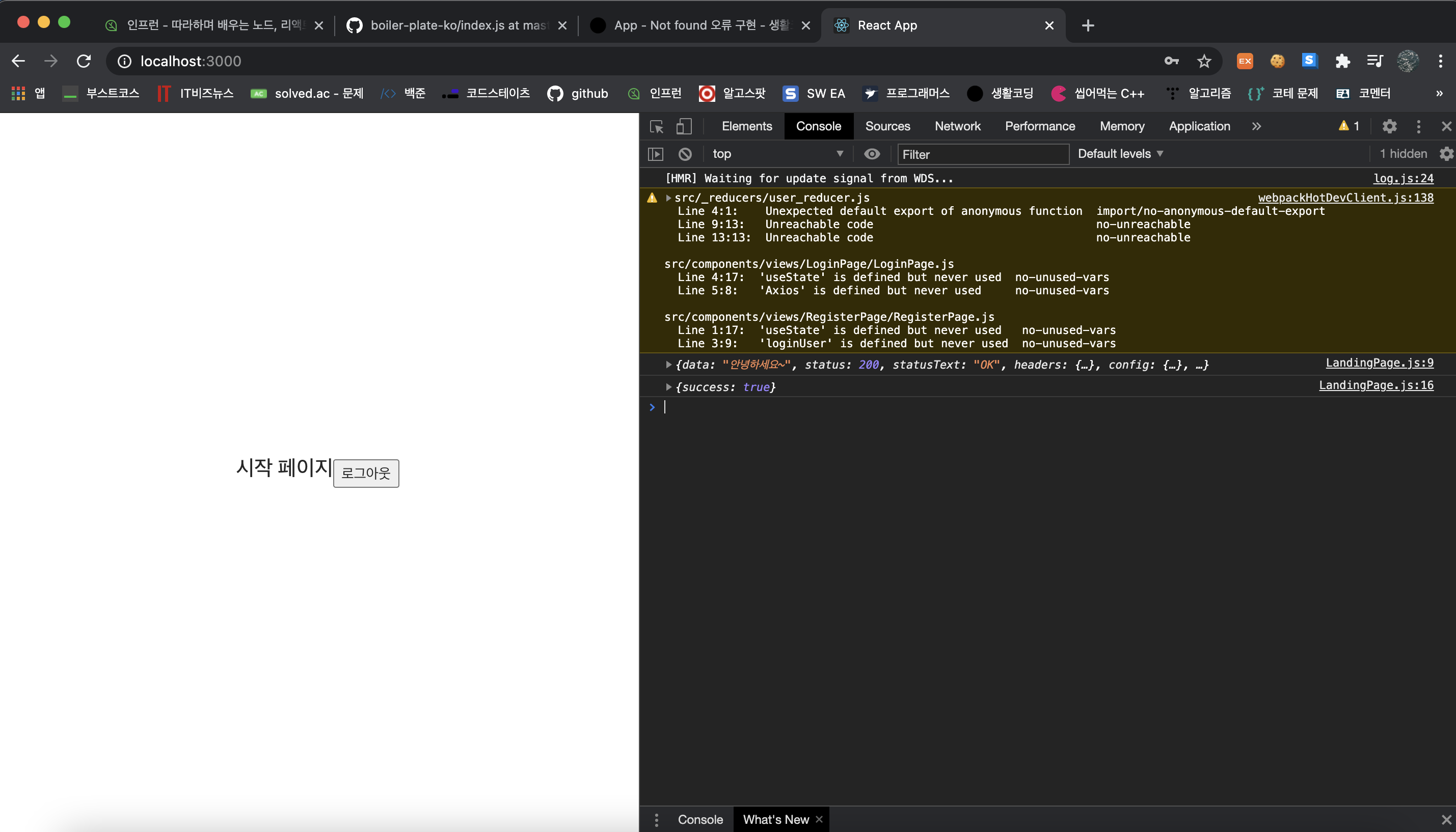 여기까지 리엑트 노드를 이용한 로그인, 로그아웃, 회원가입 페이지 구현을 해 보았다.