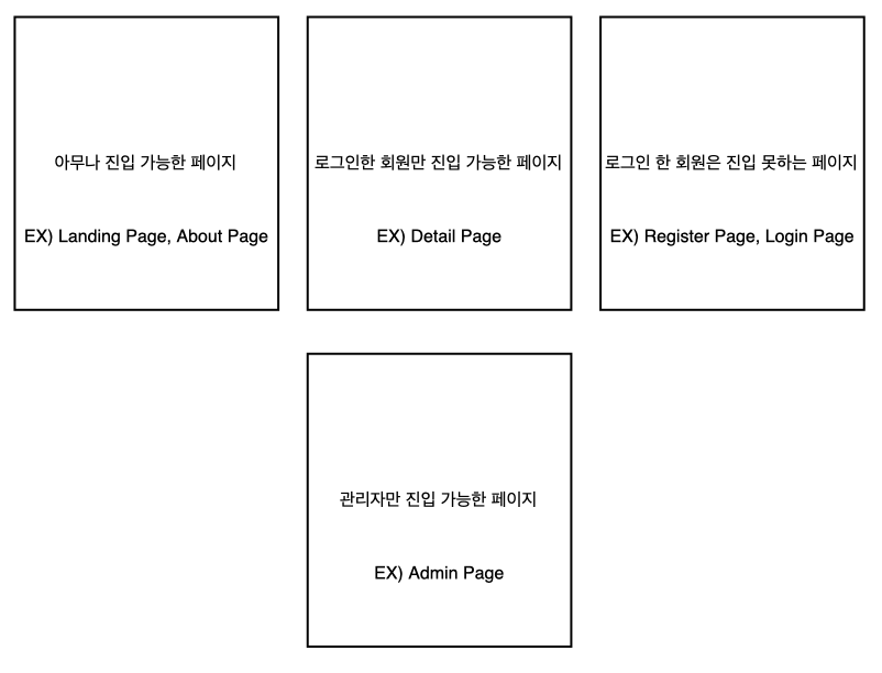 - option : null (아무나 출입 가능한 페이지) , true(로그인한 유저만 출입 가능), false(로그인한 유저 출입 불가능)