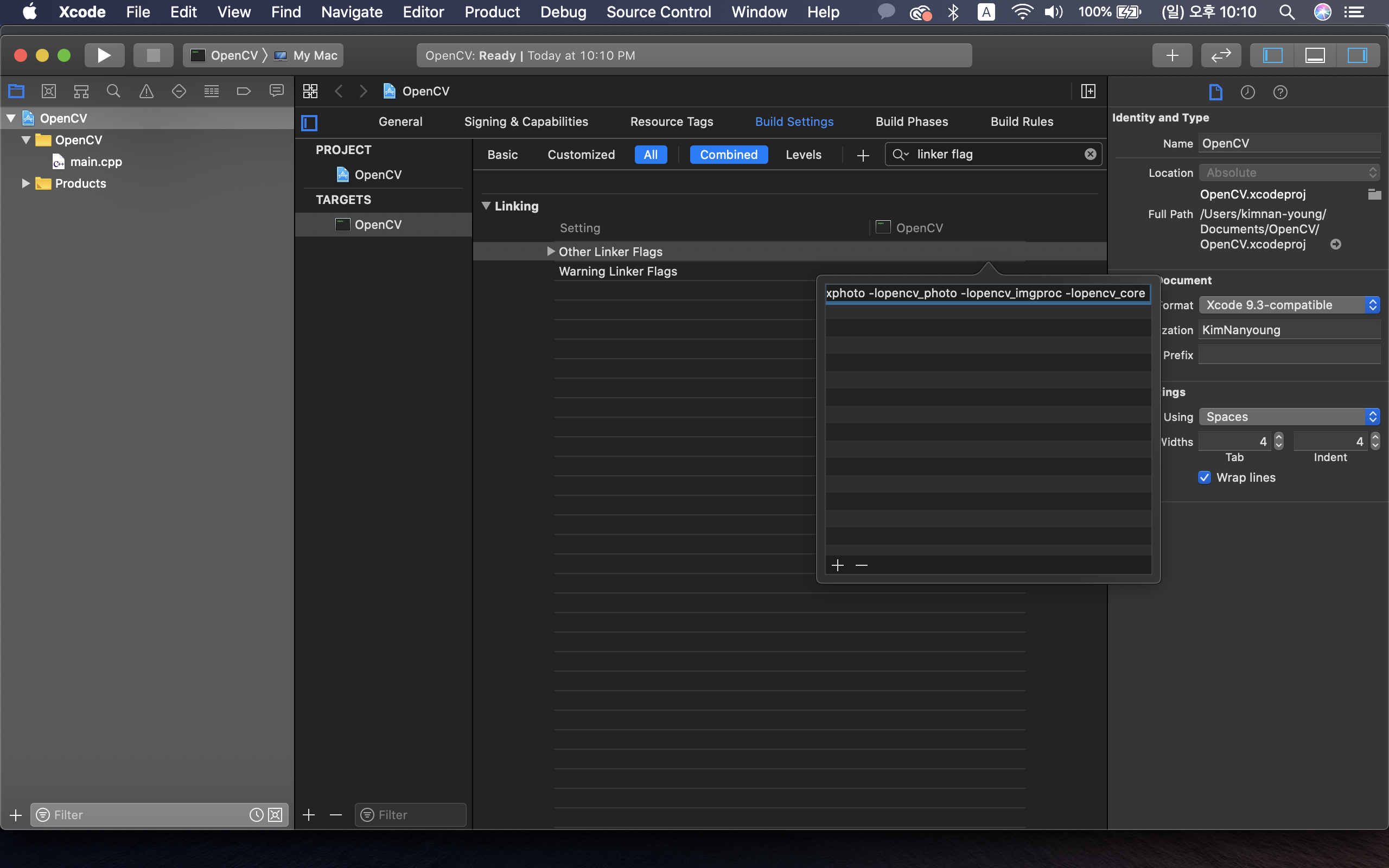 Other Linker Flags 에도 위에서 추출한 링커플래그를 추가해준다.