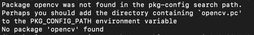 Package opencv was not found in the pkg-config search path.Perhaps you should add the directory containing `opencv.pc’to the PKG_CONFIG_PATH environment variableNo package ‘opencv’ found