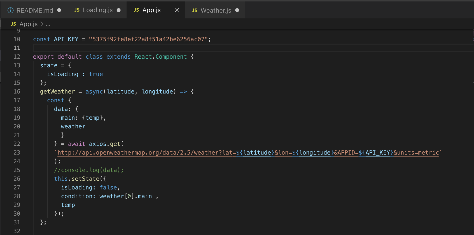 - Weather.js 파일을 새로 만든다.