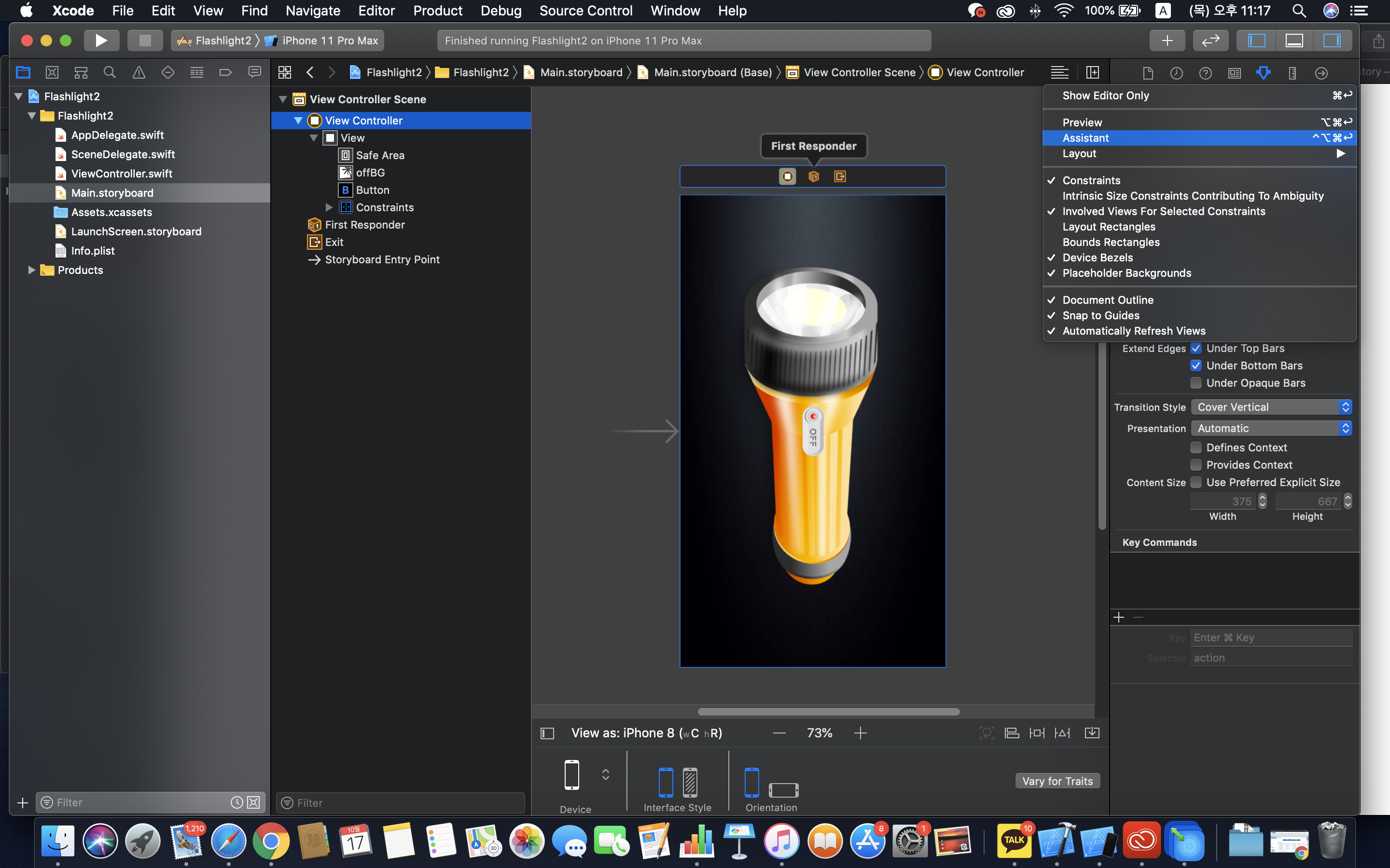 Step 1) Main Storyboard - View Controller - Assistant 클릭한다.