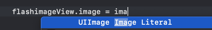 - flashimageview.image는 image view가 보여주고 있는 이미지를 나타내며 생성자 호출을 통해 UIImage 인스턴스를 만들어서 리턴해준다. 이때 생성자는 위와 마찬가지로 특정한 파일 이름과 연관된 이미지를 리턴해주는 UIImage?(named : String)을 사용한다.