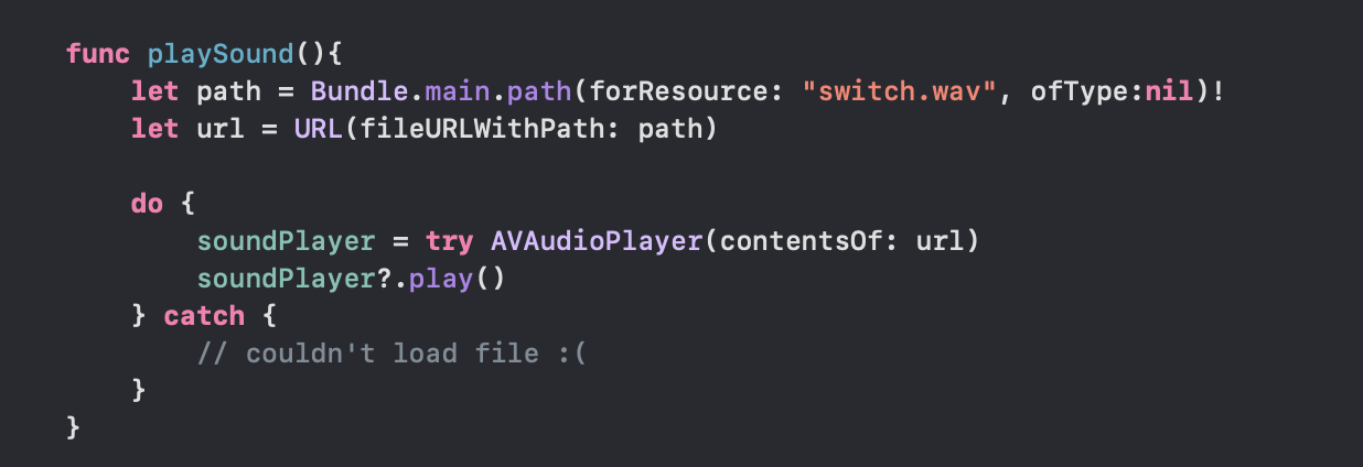 Step 3) 생성한 playSound()함수를 switchTapped() 함수 안에서 호출한다.